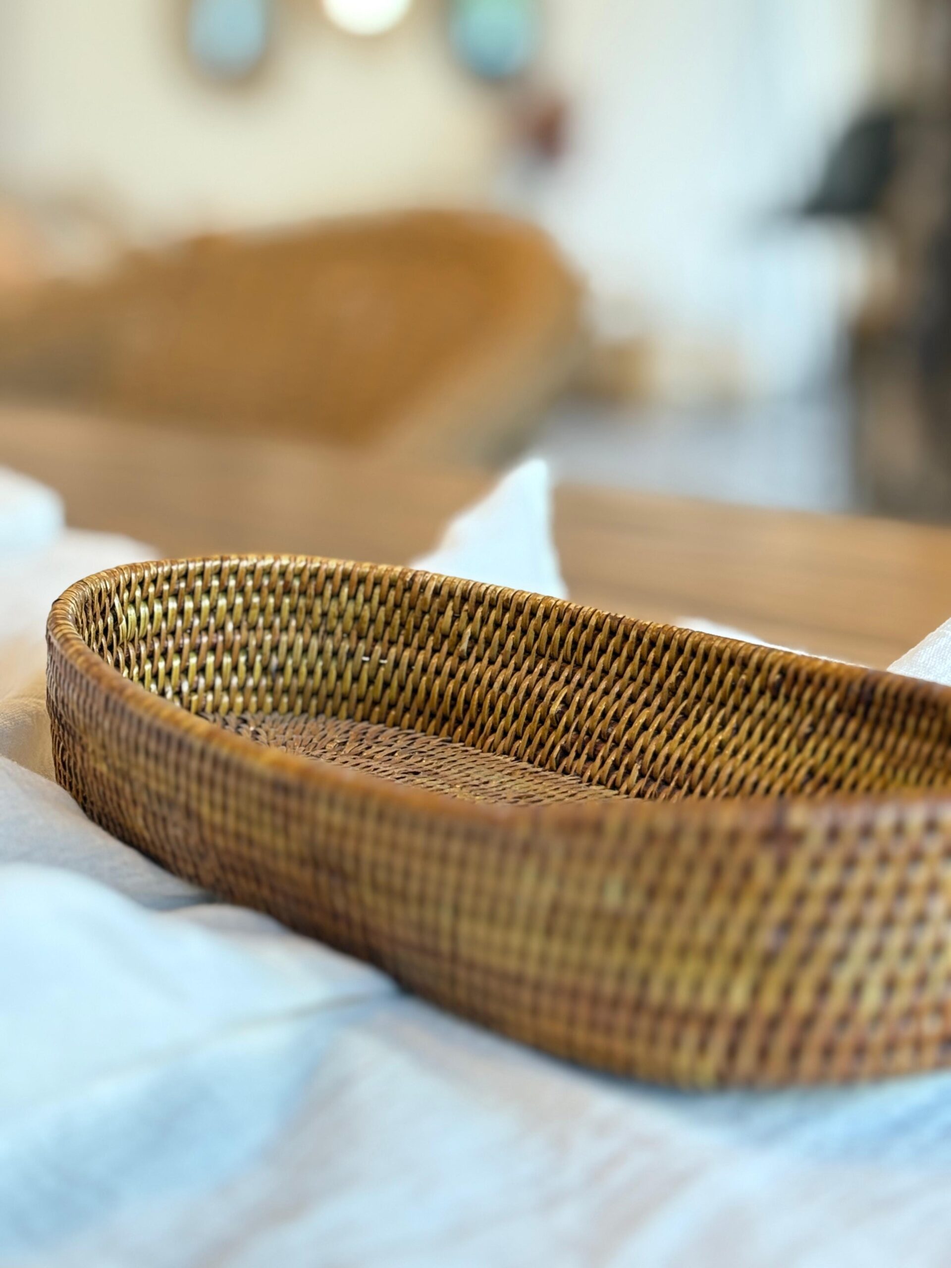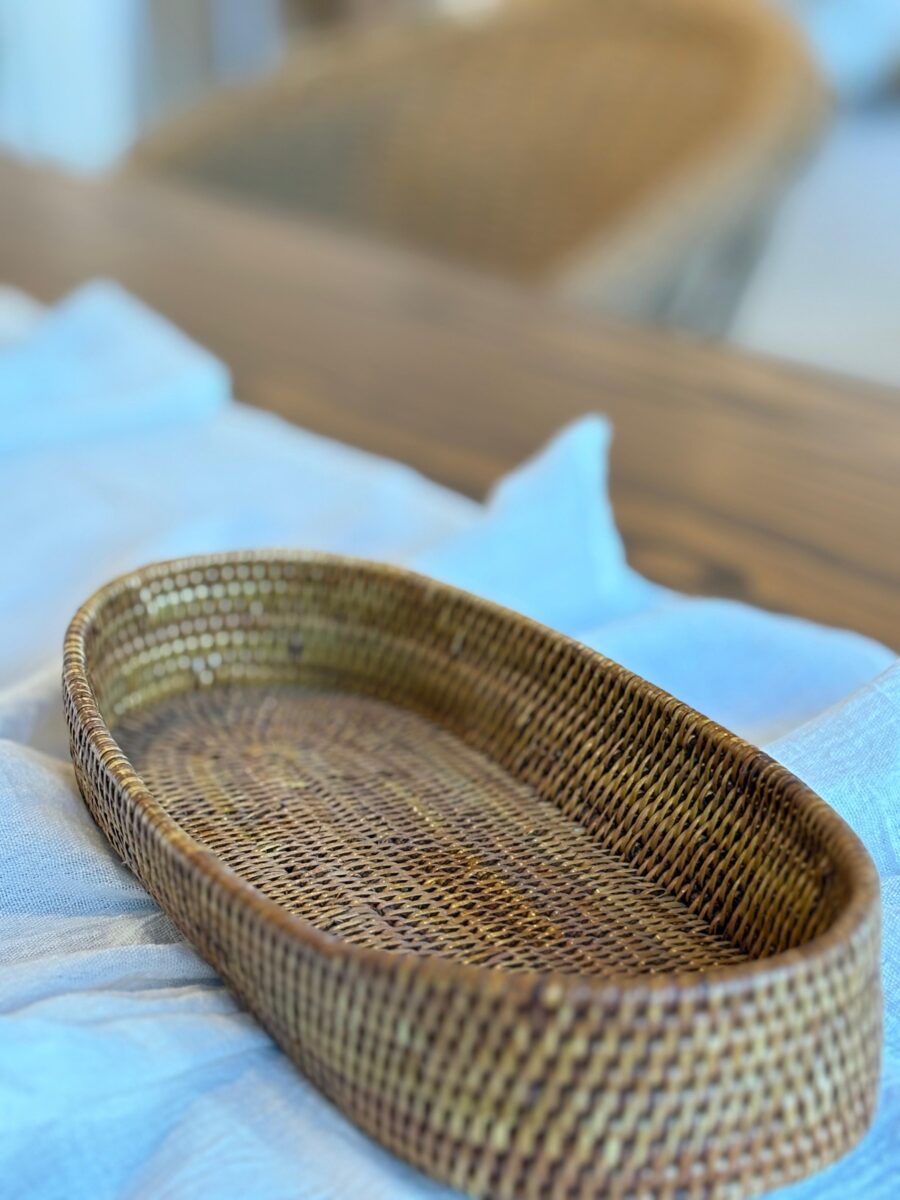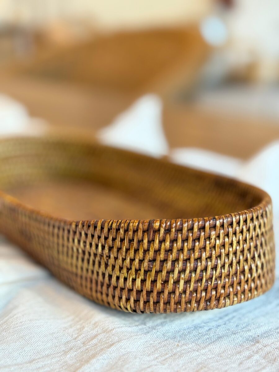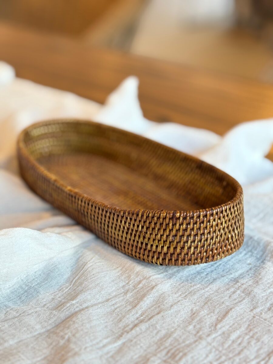 Bandejita de ratán ovalada de medidas: 5 x 14 x 26 cm