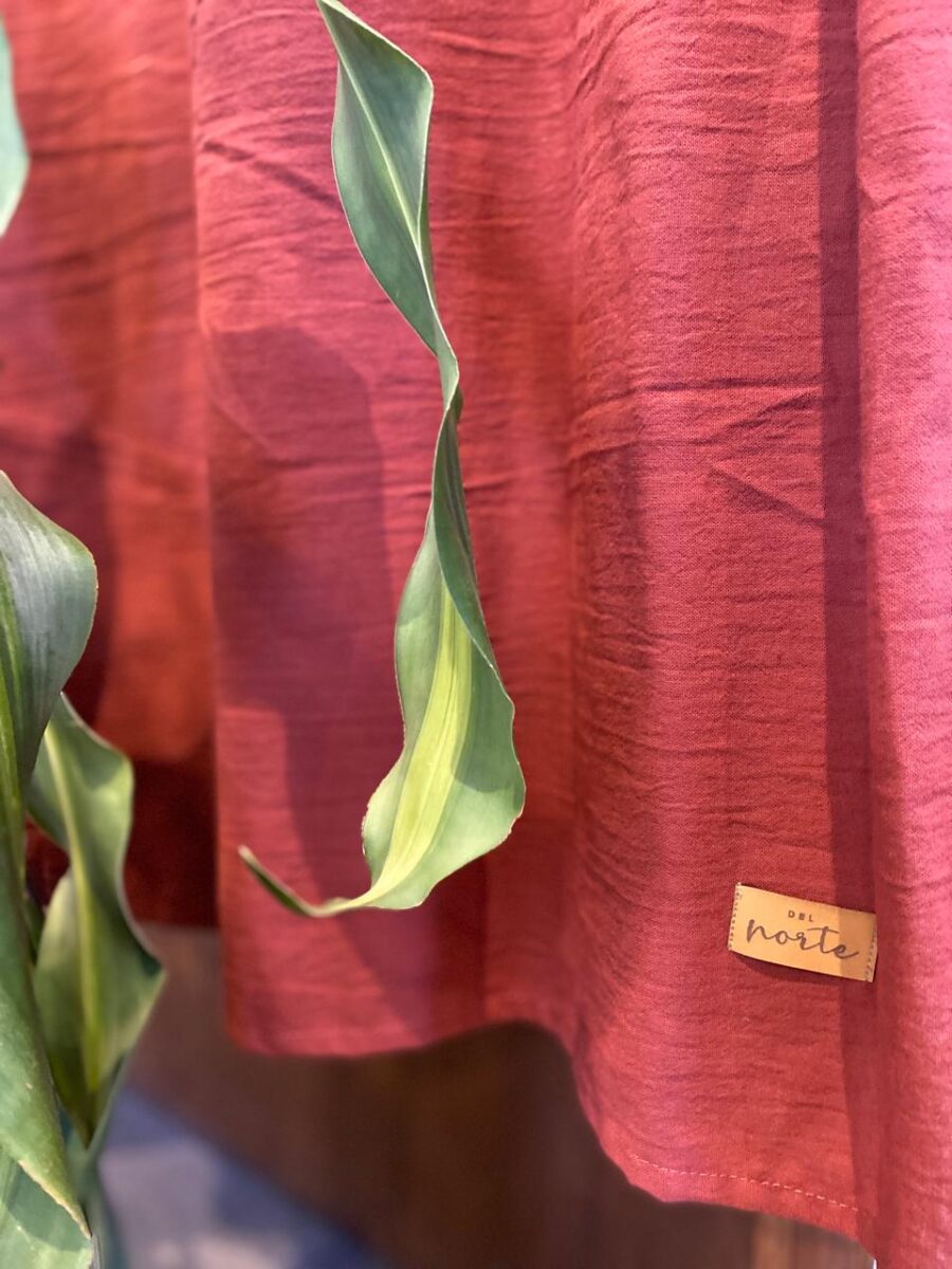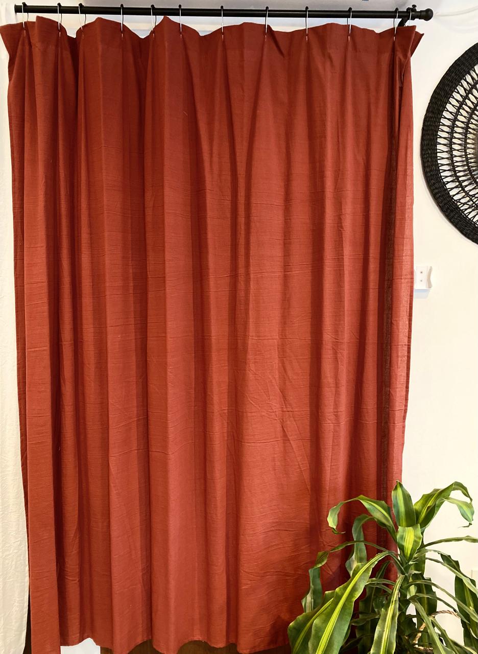 Cortina de Baño de tusor lisa color carmín, con 12 ojales.