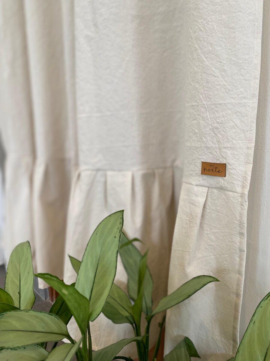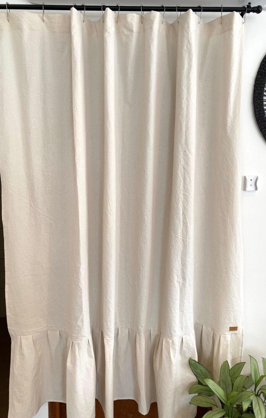 Cortina de Baño de tusor crudo con vuelos, con 12 ojales.