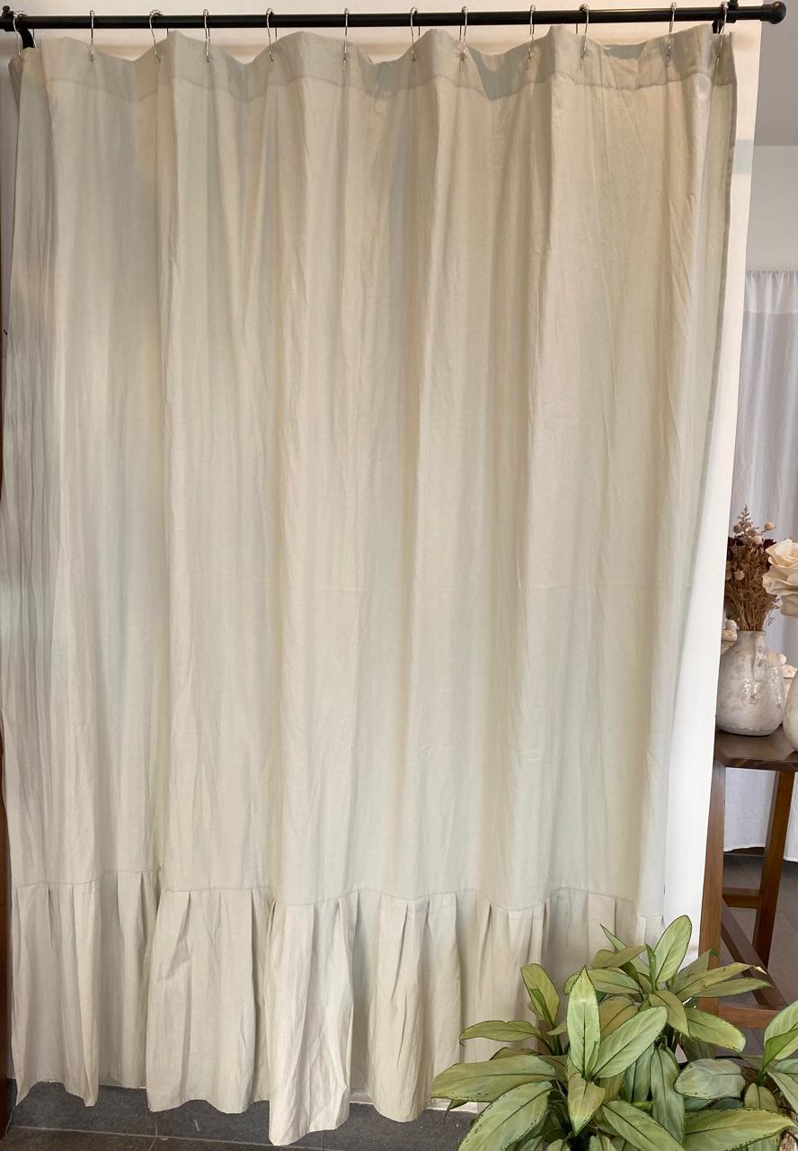 Cortina de Baño de tusor verde menta con vuelos, con 12 ojales.