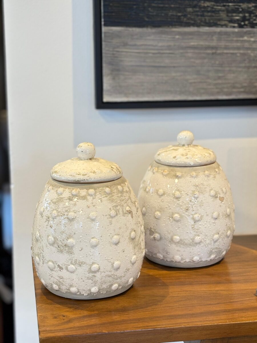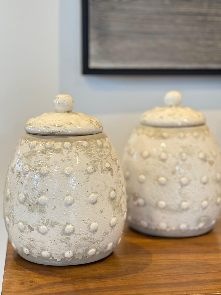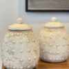 Frasco con tapa de cerámica laqueada y textura de lunares 22 cm