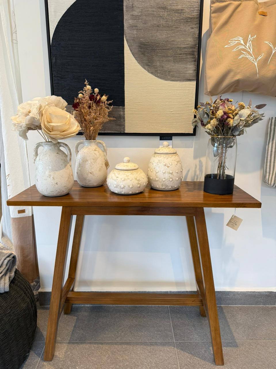 Mesa de arrime de madera, de pino seleccionado y pulido.