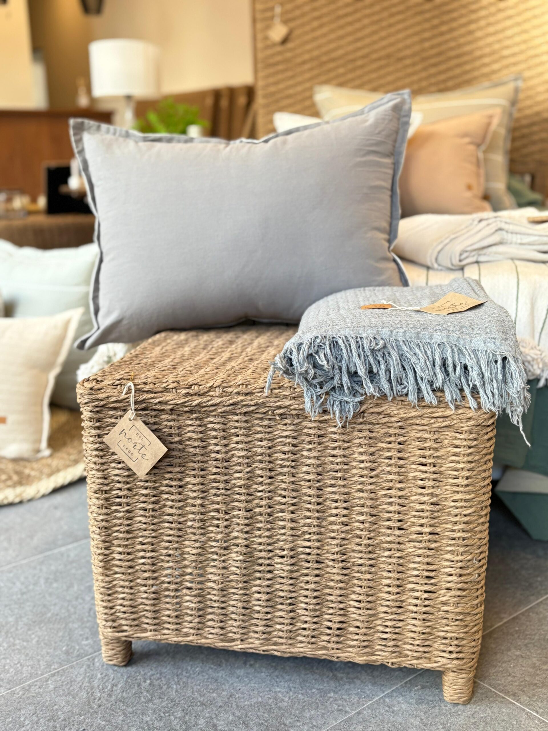 Mesa rectangular multifunción, tejida completamente en hilo kraft símil ratán, con un diseño artesanal y encantador que aporta textura y calidez a cualquier espacio. Medidas: 53 cm de ancho x 40 cm de profundidad x 40 cm de alto. Su estructura firme y estética natural la convierte en una pieza versátil y funcional: úsala como mesa auxiliar, banco o pie de cama según tus necesidades. Ligera y fácil de trasladar, se adapta perfectamente a livings, dormitorios, recibidores o balcones. Un toque rústico y moderno para complementar tu decoración.